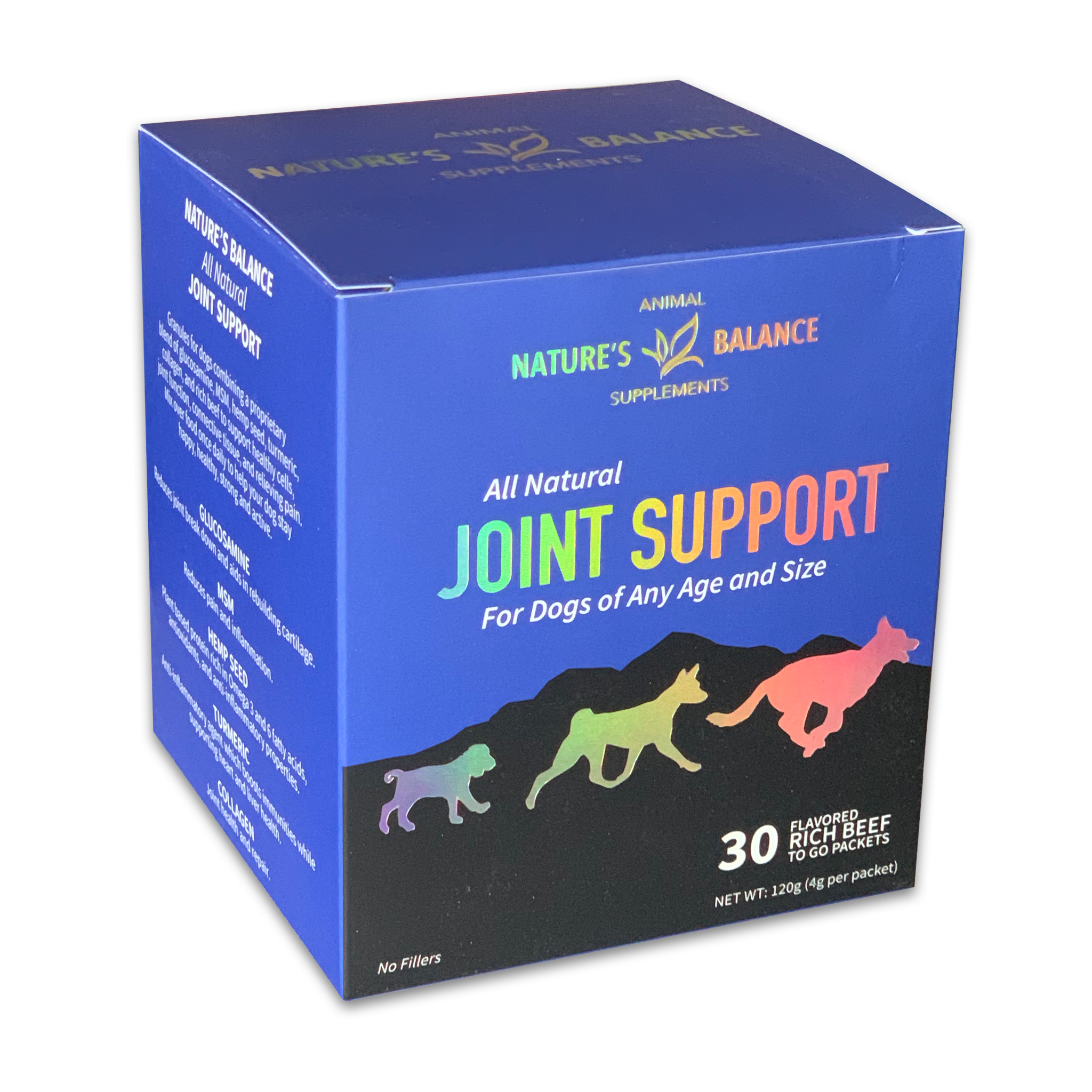 A carefully formulated joint support supplement designed to help maintain normal joint structure, flexibility, and mobility in dogs. Glucosamine supports the body’s natural cartilage components, while MSM contributes to joint comfort and connective tissue support. Flaxseed provides plant-based nutrients, including omega-3 and omega-6 fatty acids, to support normal inflammatory balance. Organic turmeric offers botanical antioxidant support, and collagen supplies key structural proteins that help maintain healthy joints and connective tissues. This formula is intended for daily use as part of a balanced wellness routine.